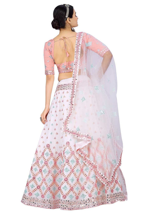 A Line Lehenga Georgette White Diamond