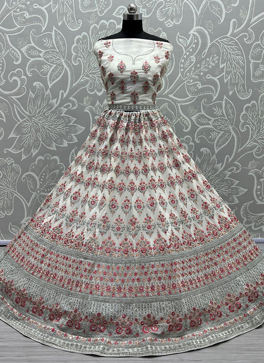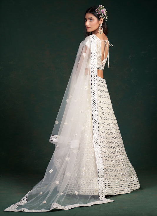 A Line Lehenga Georgette White Embroidered