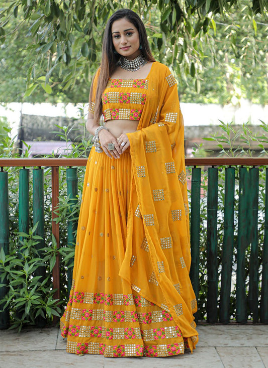 A Line Lehenga Georgette Viscose Mustard