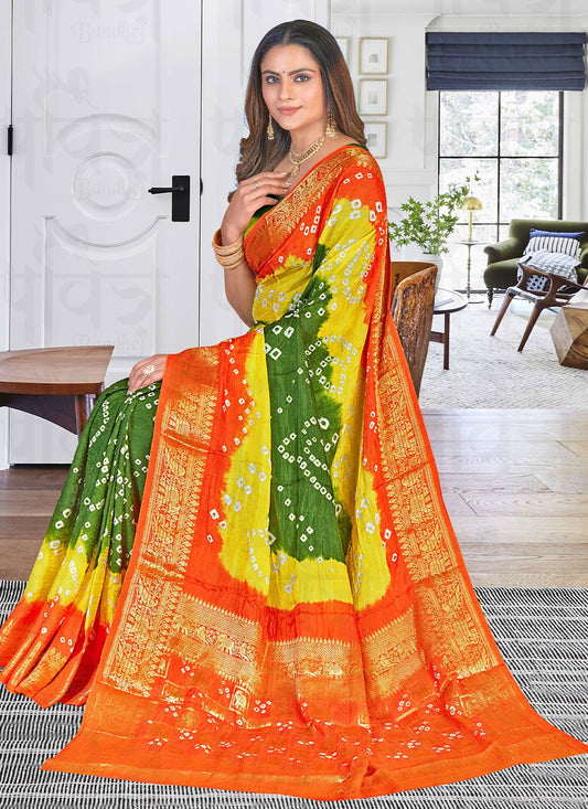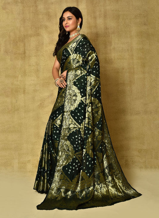 Bandhej Saree Silk Green Weaving Saree