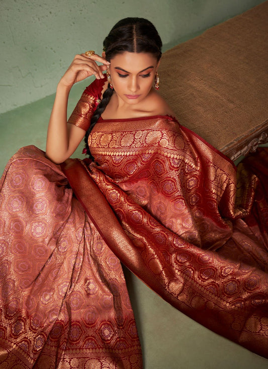 Bandhani Saree Raw Silk Maroon Weaving
