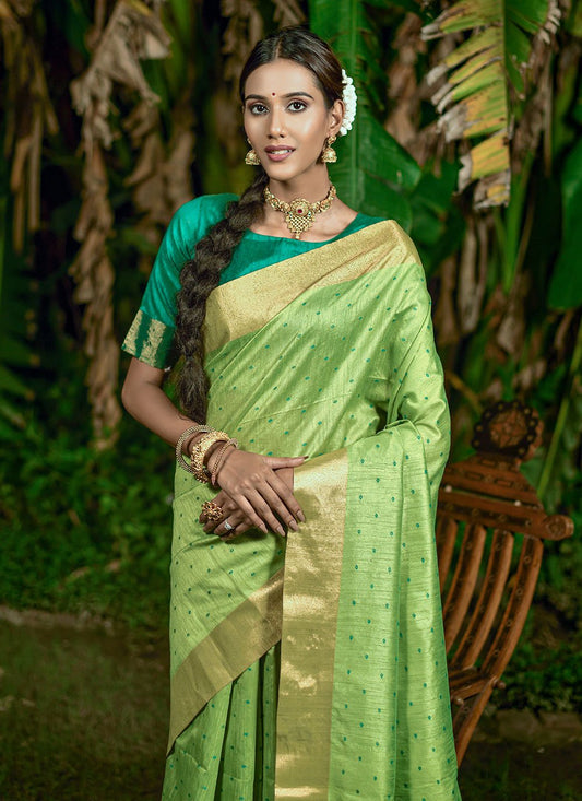 Bandhani Saree Raw Silk Green Woven