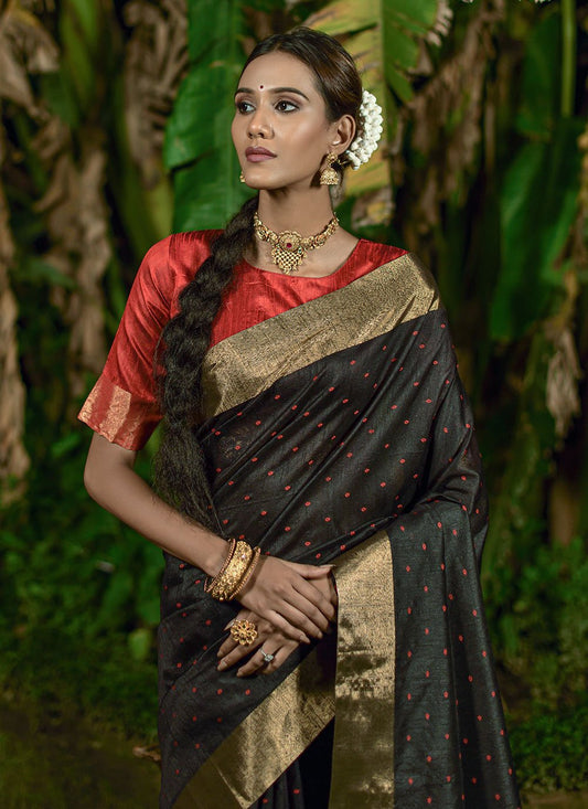 Bandhani Saree Raw Silk Black Woven