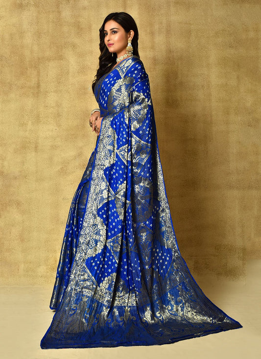 Bandhej Saree Silk Blue Weaving Saree