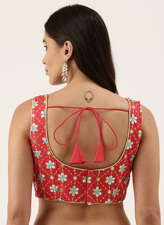 Blouse Raw Silk Turquoise Embroidered Blouse