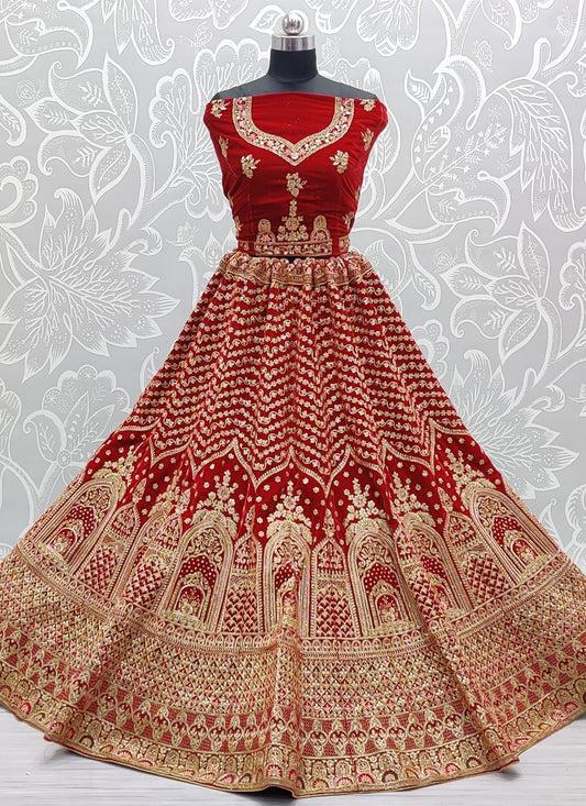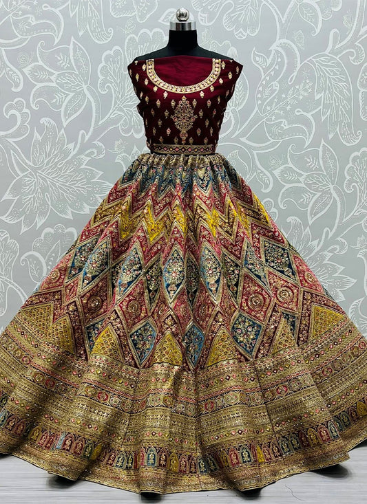 Lehenga Choli Velvet Maroon Diamond Lehenga