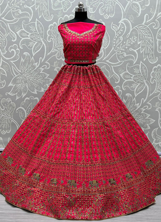 Lehenga Choli Silk Pink Embroidered Lehenga