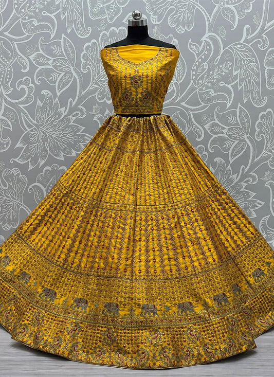Lehenga Choli Silk Yellow Embroidered Lehenga