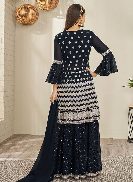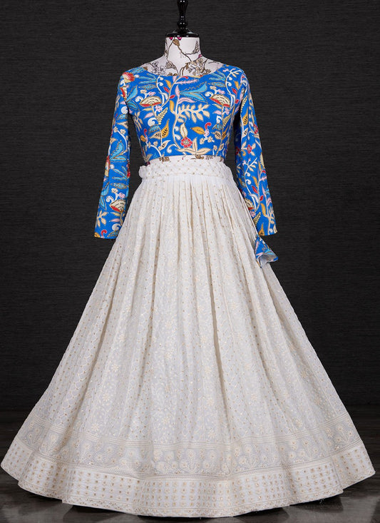 Lehenga Choli Georgette Blue Embroidered Lehenga