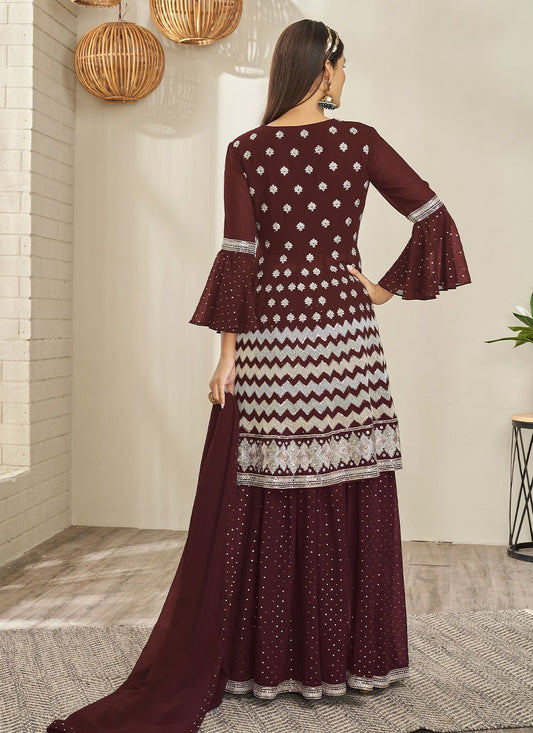 Lehenga Choli Georgette Maroon Embroidered Lehenga