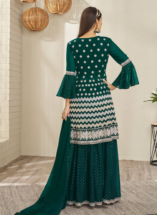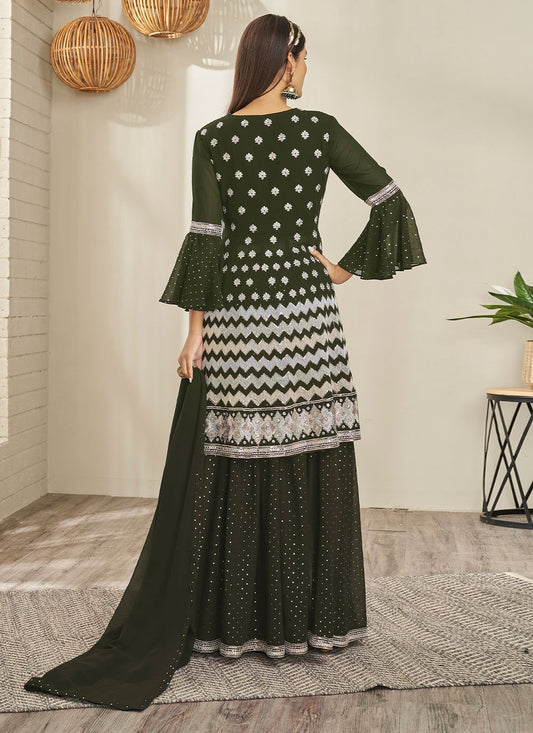 Lehenga Choli Georgette Green Embroidered Lehenga