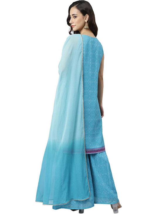Salwar Suit Silk Turquoise Embroidered Salwar