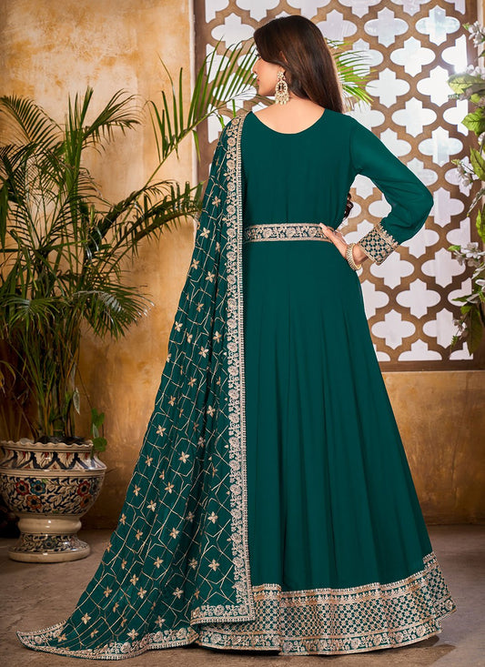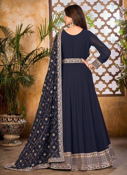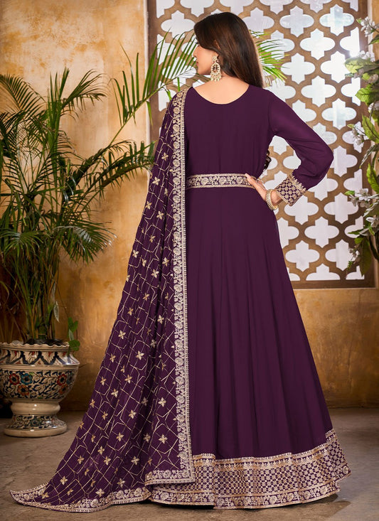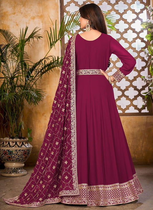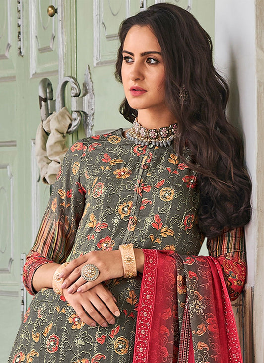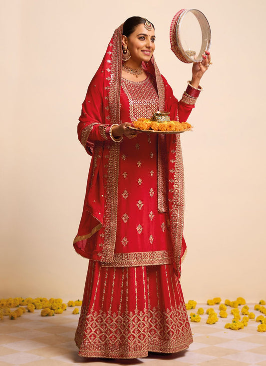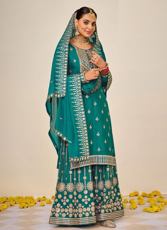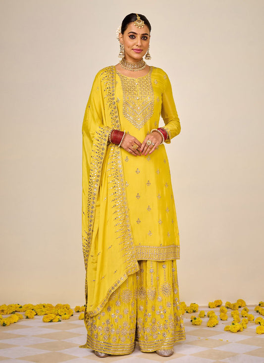 Palazzo Salwar Suit Chinon Yellow Embroidered