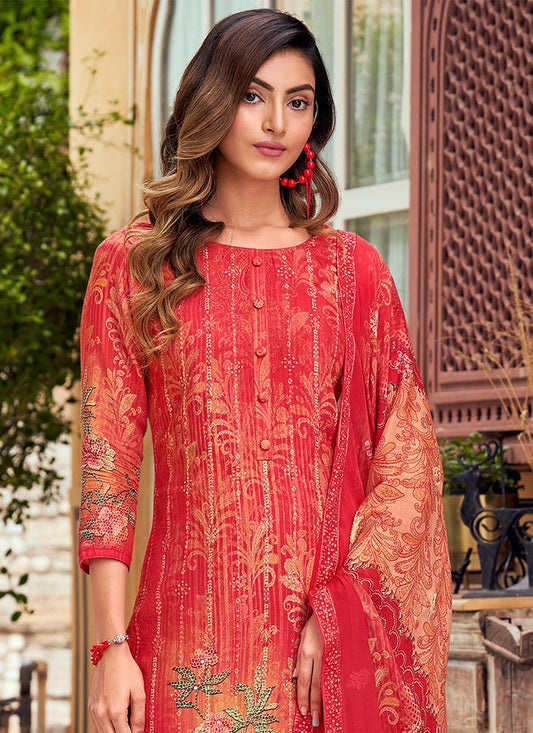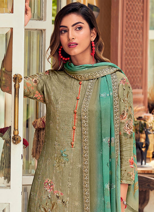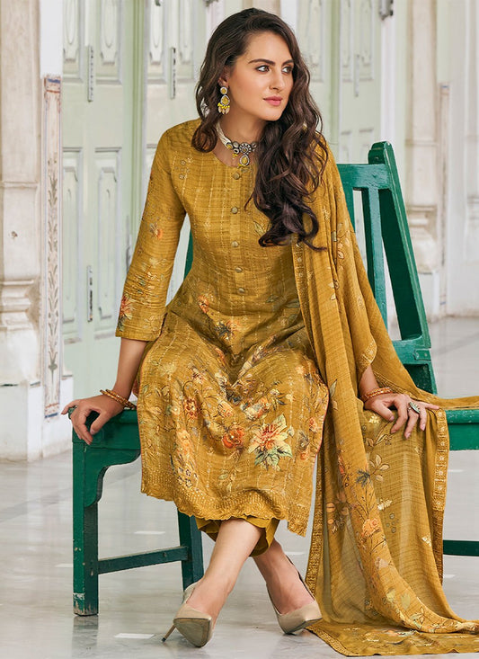 Pakistani Salwar Suit Muslin Mustard Embroidered