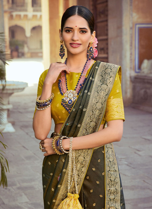 Classic Silk Tissue Green Woven Saree