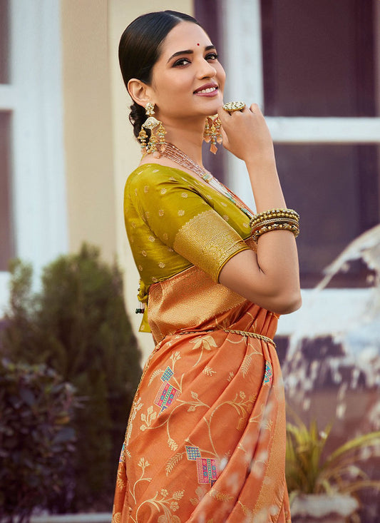 Designer Silk Tissue Orange Woven Saree