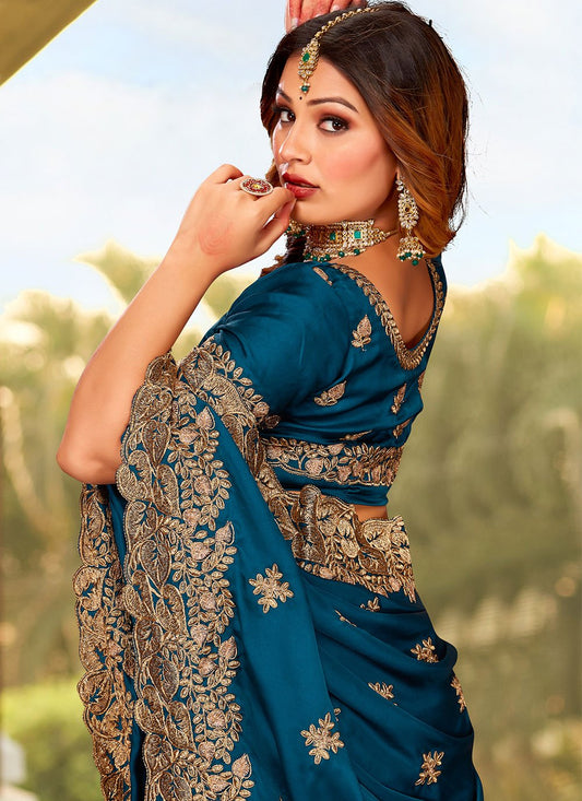 Trendy Saree Pashmina Aqua Blue Kashmiri