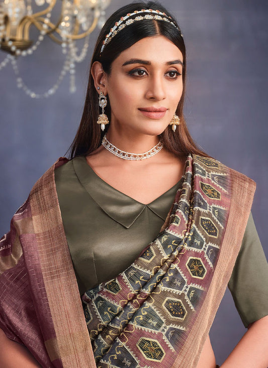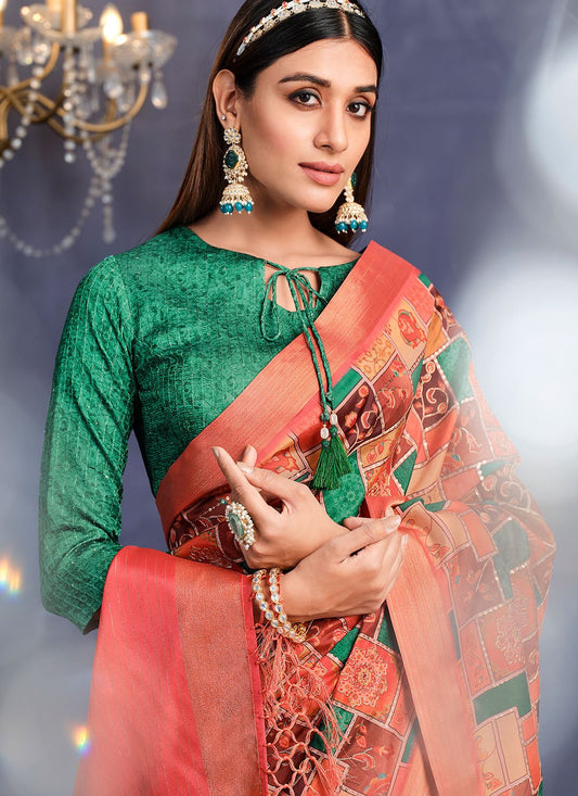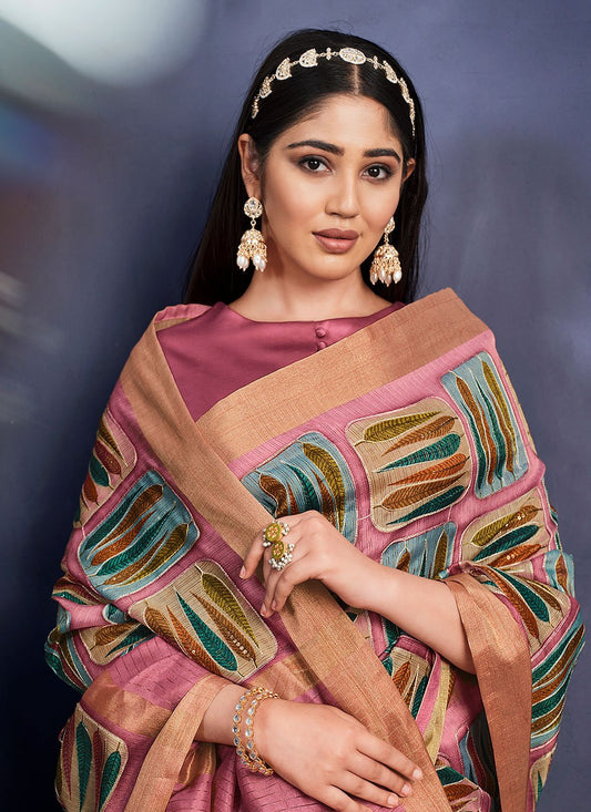 Traditional Saree Tussar Silk Morpeach Embroidered