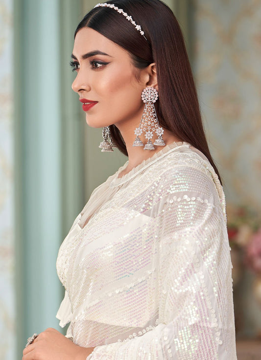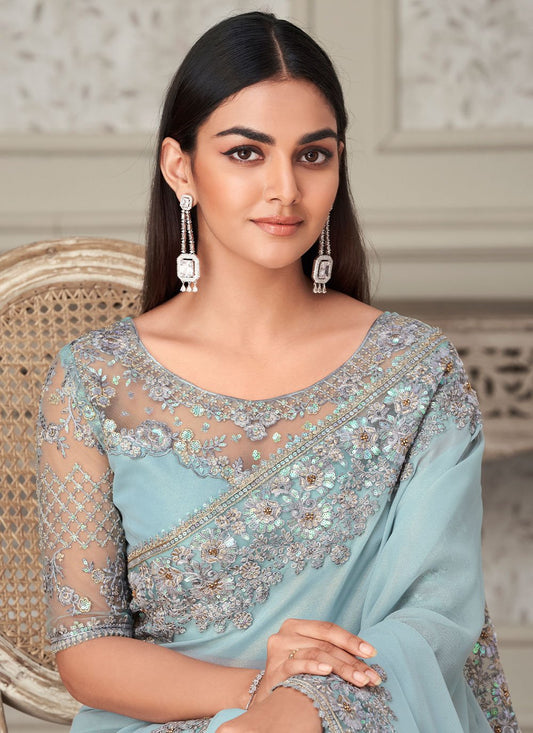 Classic Shimmer Georgette Aqua Blue Embroidered