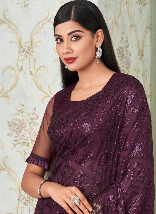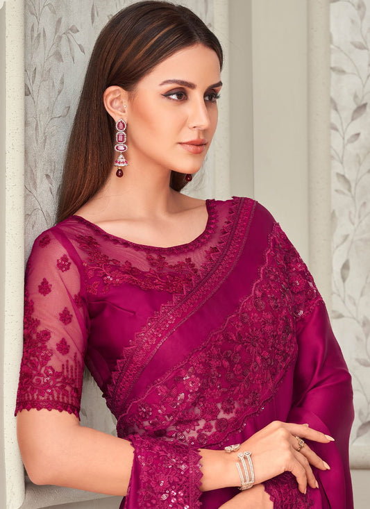 Traditional Saree Silk Fuchsia Embroidered Saree