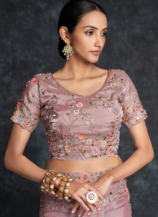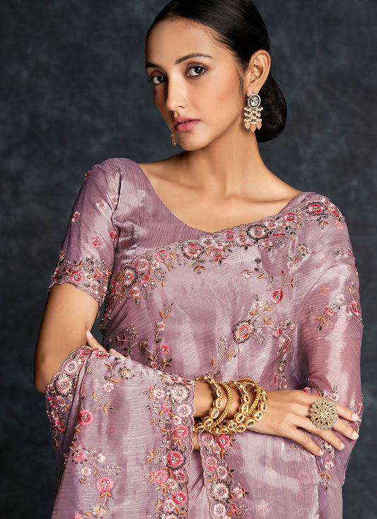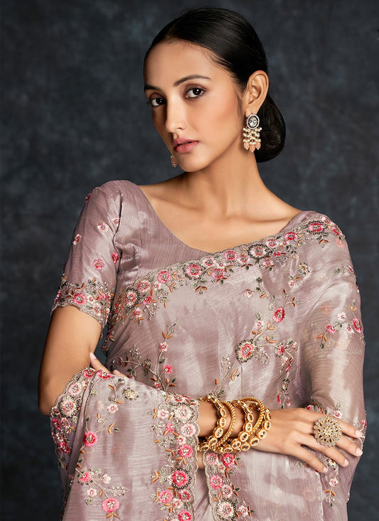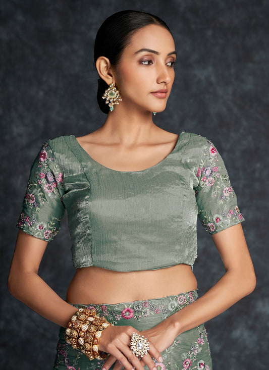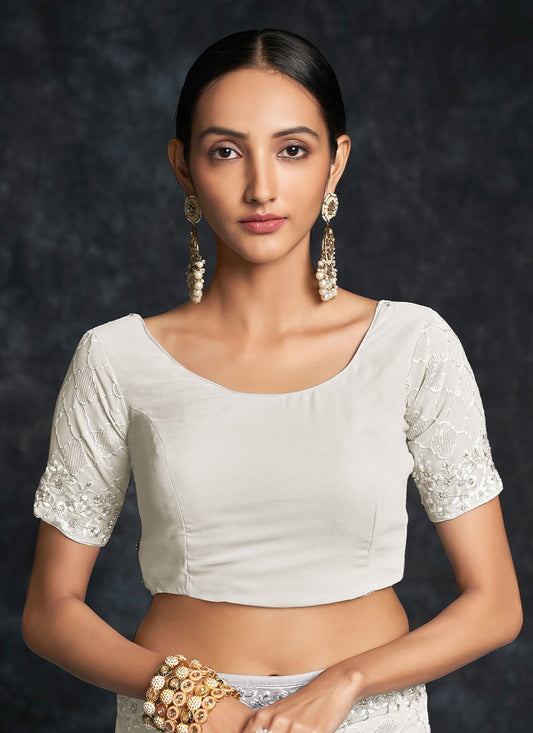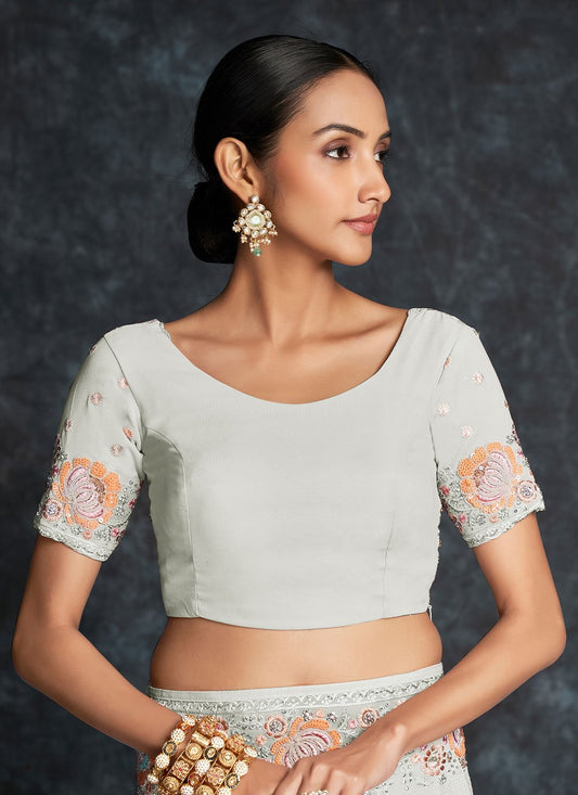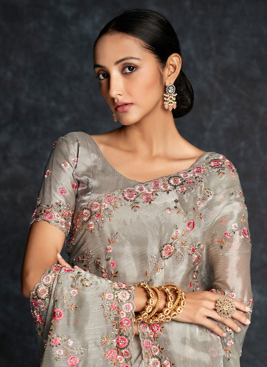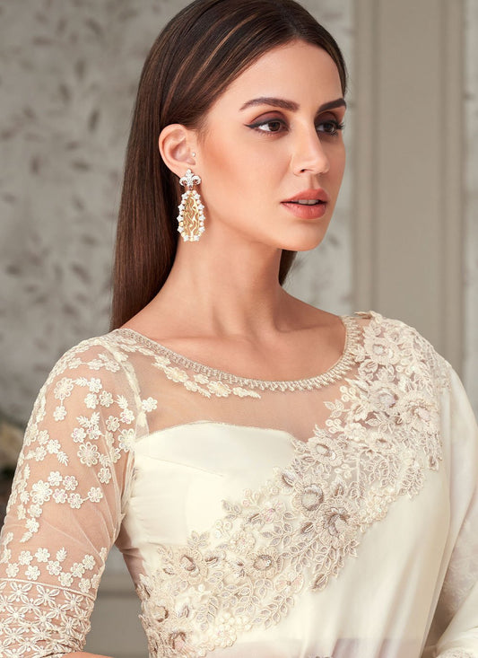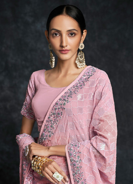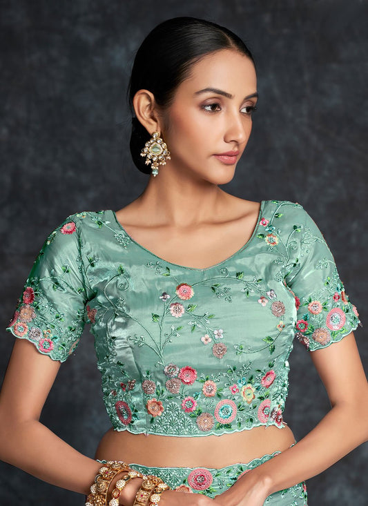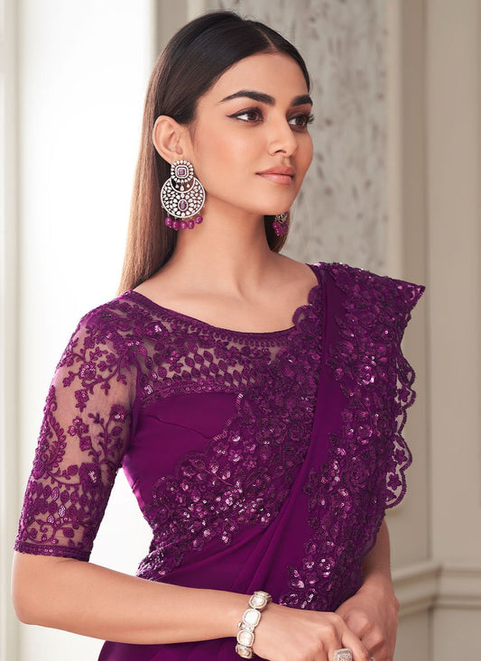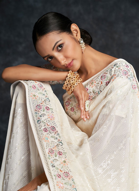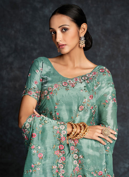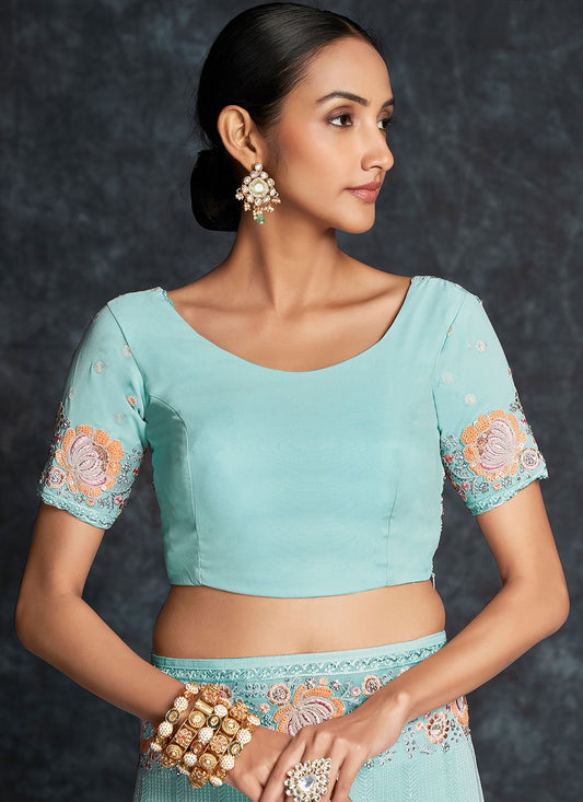Contemporary Georgette Aqua Blue Embroidered Saree