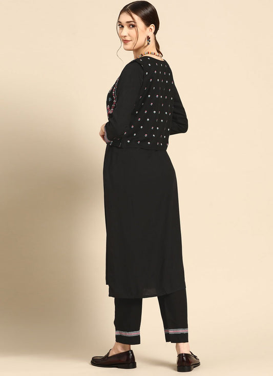 Designer Kurti Rayon Black Plain Kurtis