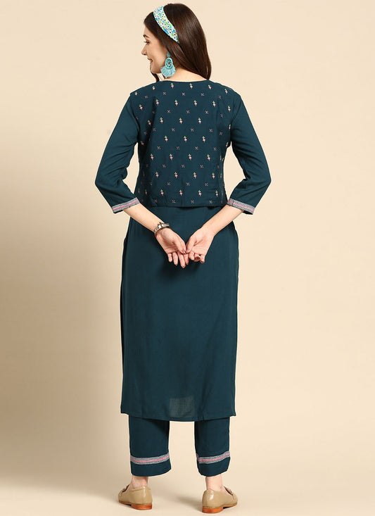 Party Wear Kurti Rayon Teal Plain