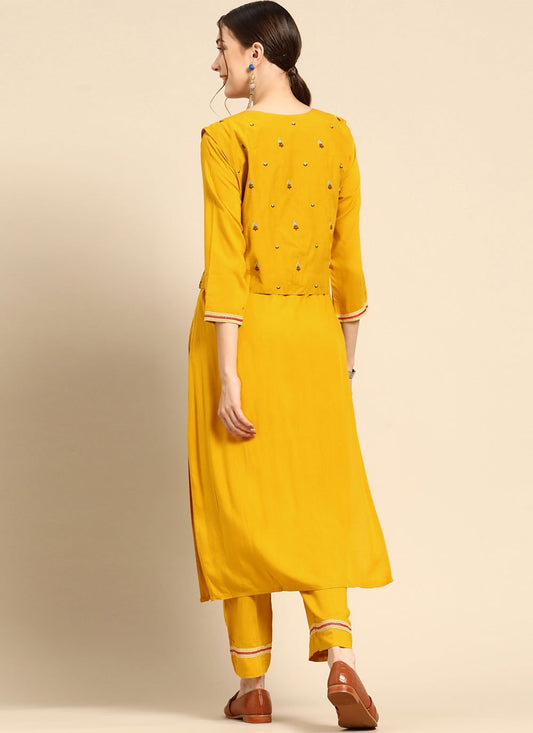 Casual Kurti Rayon Yellow Embroidered Kurtis