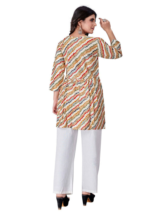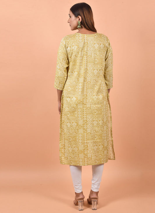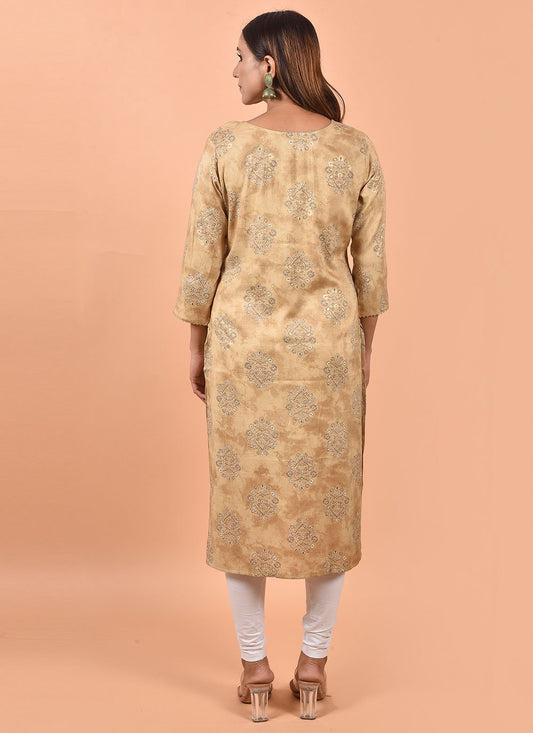 Designer Kurti Rayon Beige Embroidered Kurtis