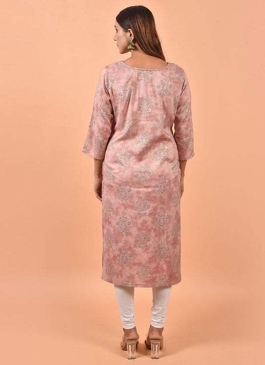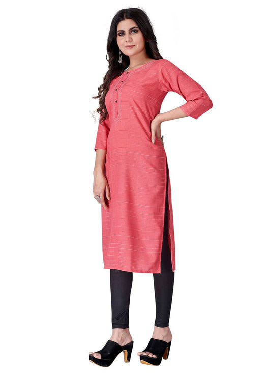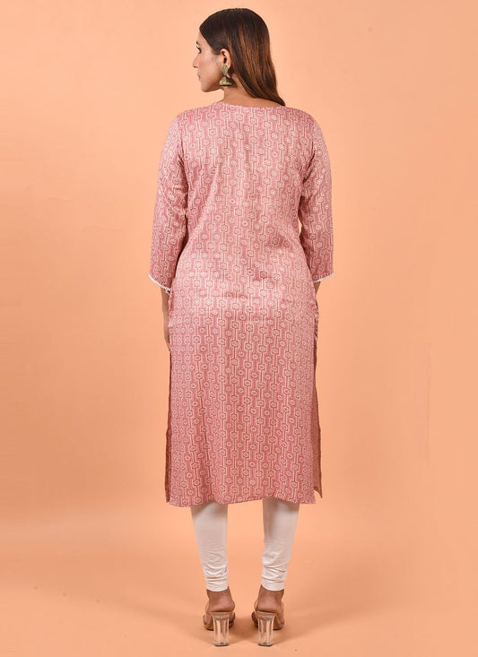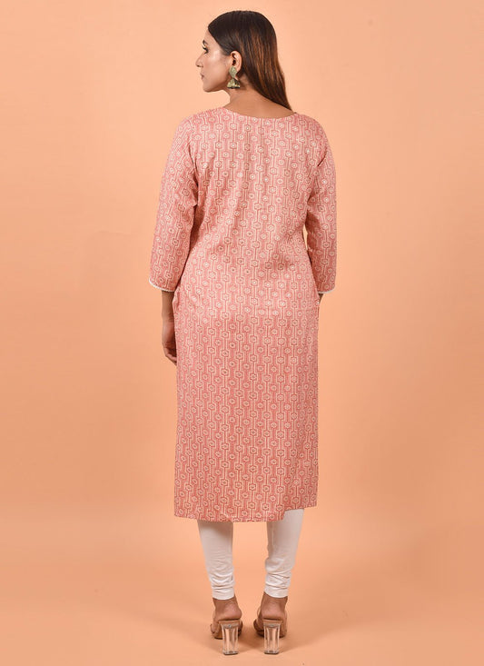 Casual Kurti Cotton Peach Embroidered Kurtis