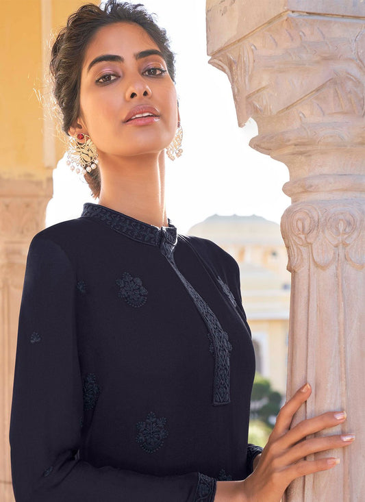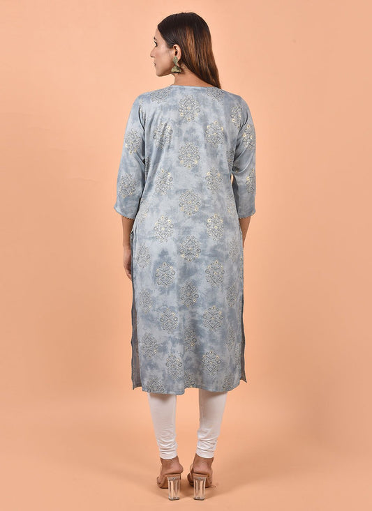Casual Kurti Rayon Blue Embroidered Kurtis