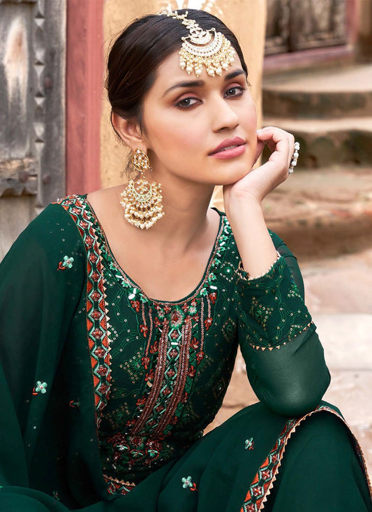 Salwar Suit Georgette Green Embroidered Salwar