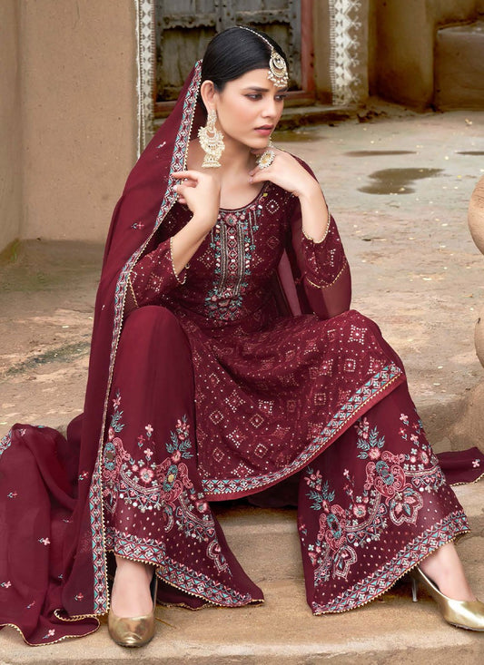 Salwar Suit Georgette Maroon Embroidered Salwar