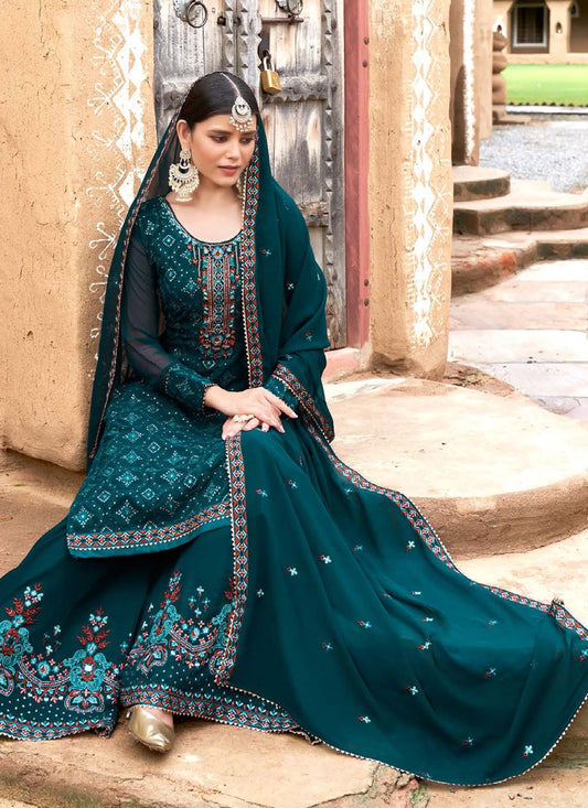 Palazzo Salwar Suit Georgette Teal Embroidered