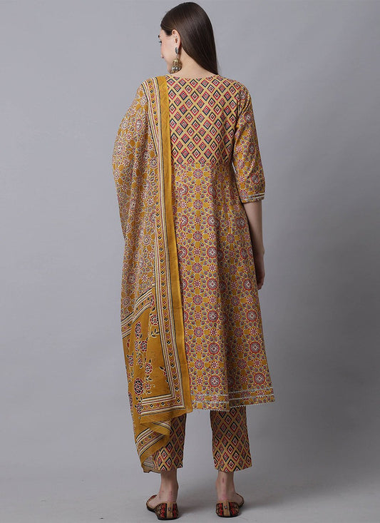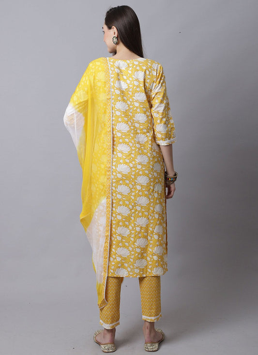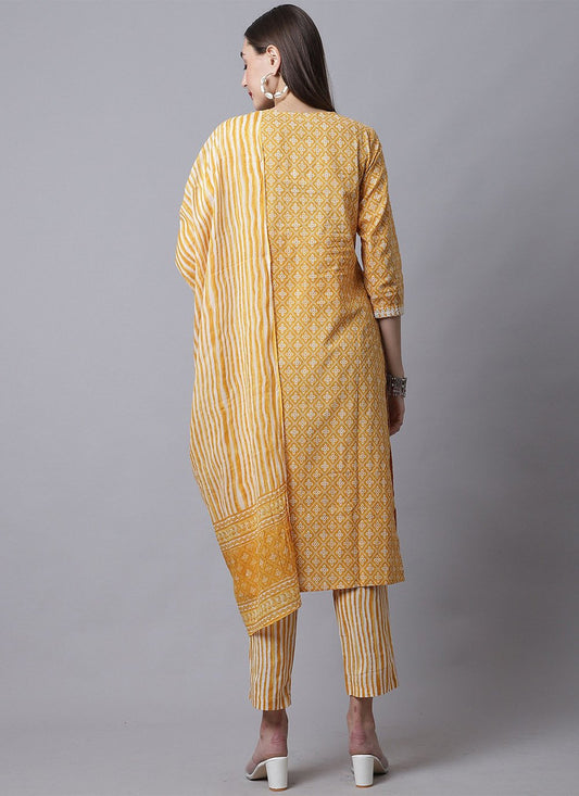 Salwar Suit Cotton Yellow Embroidered Salwar
