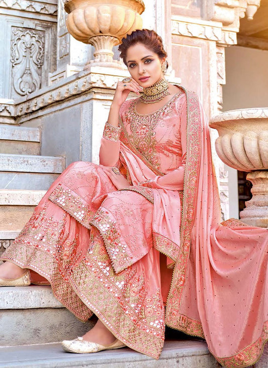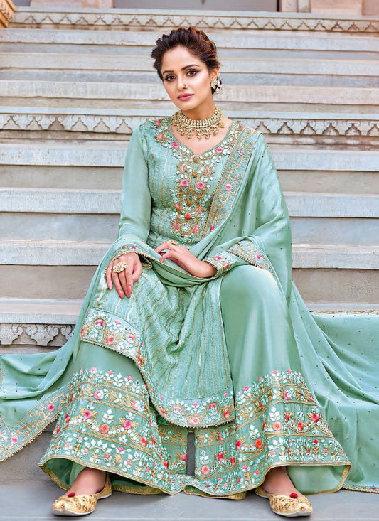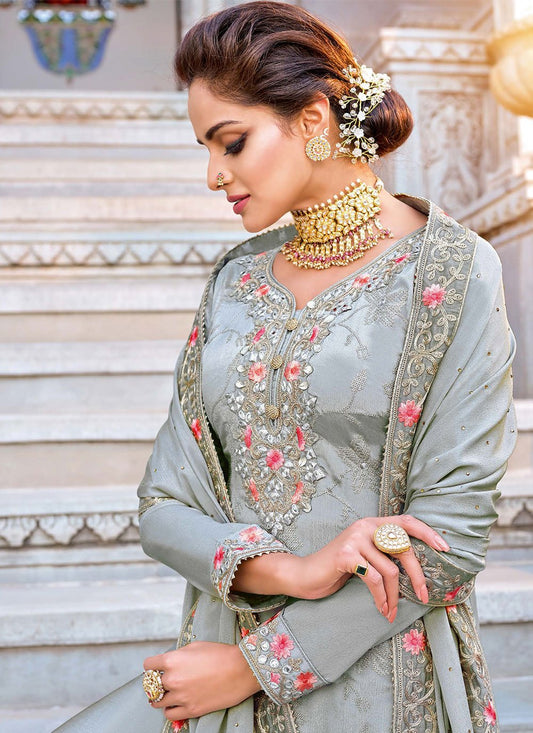 Palazzo Salwar Suit Chinon Grey Embroidered