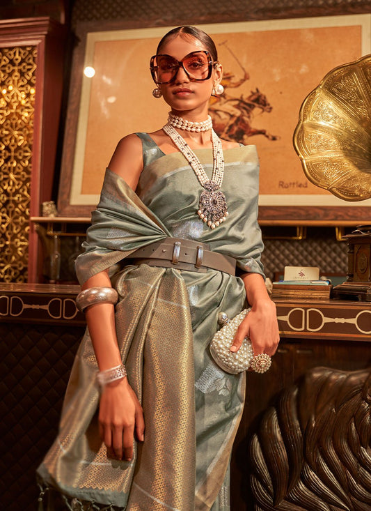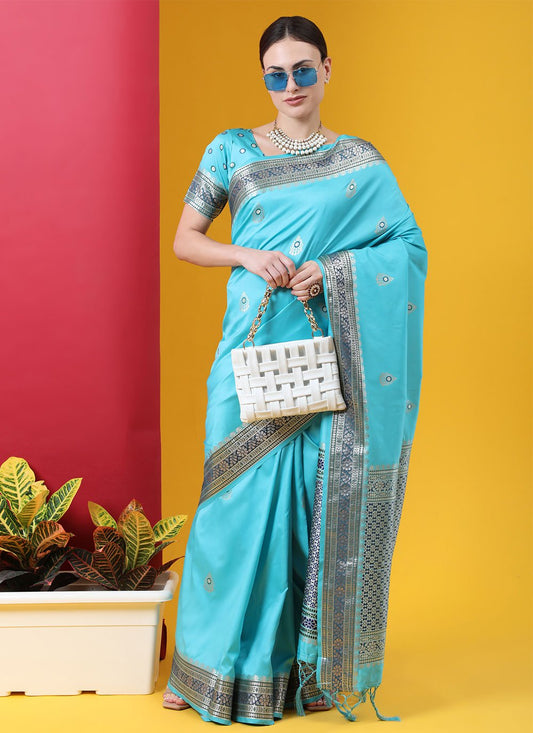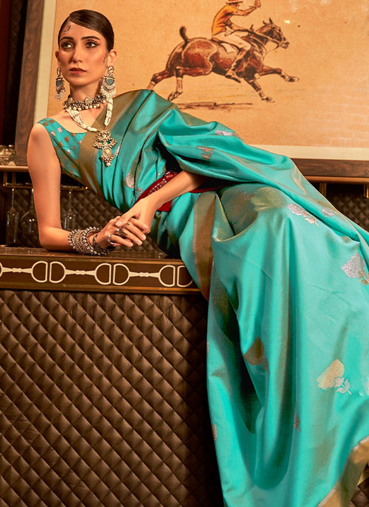 Contemporary Banarasi Silk Aqua Blue Weaving