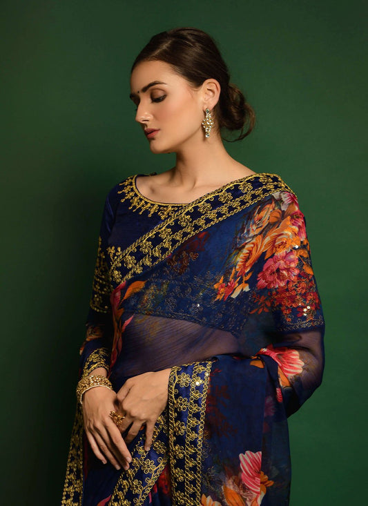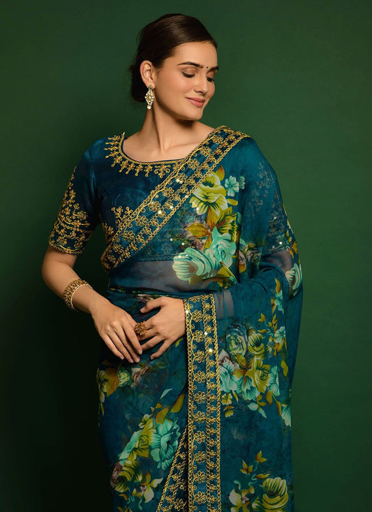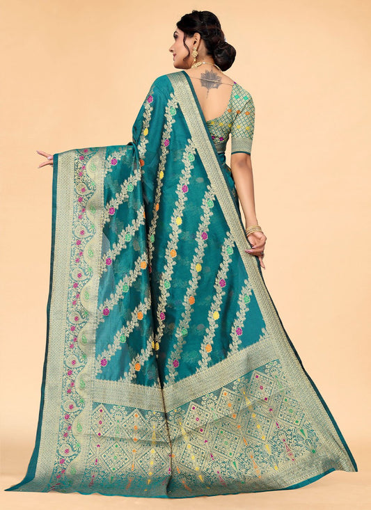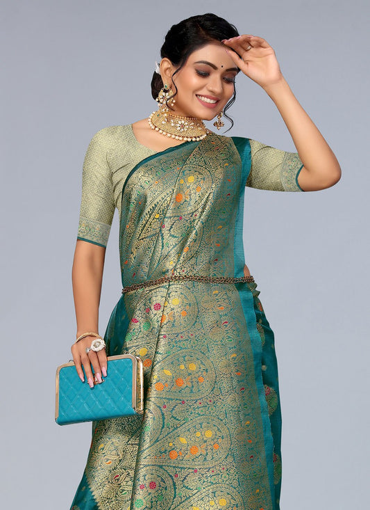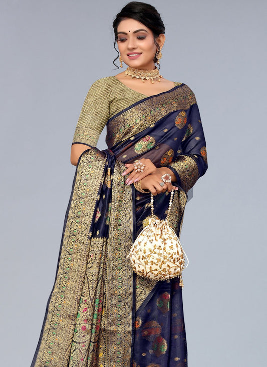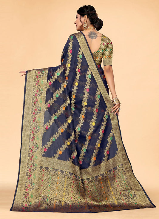 Contemporary Kanchipuram Silk Blue Embroidered Saree