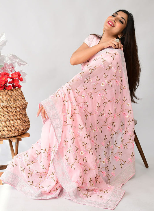 Contemporary Georgette Pink Embroidered Saree
