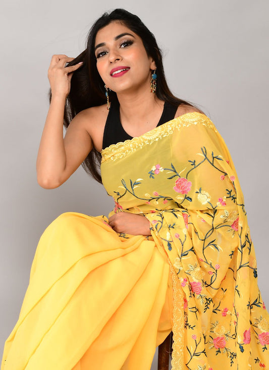 Trendy Saree Georgette Mustard Embroidered Saree