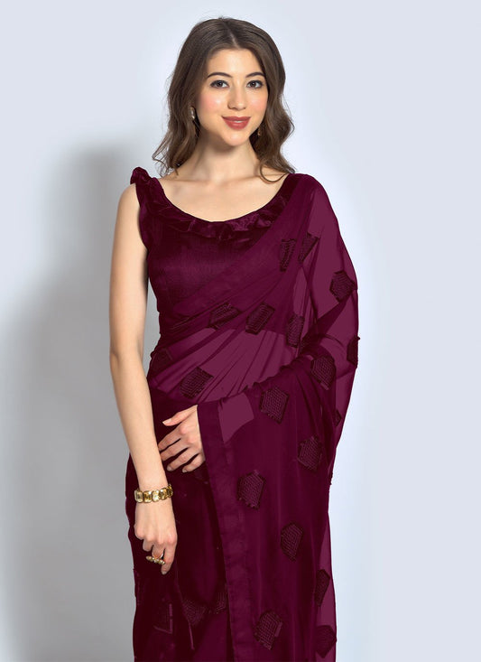 Classic Georgette Wine Sequins Saree