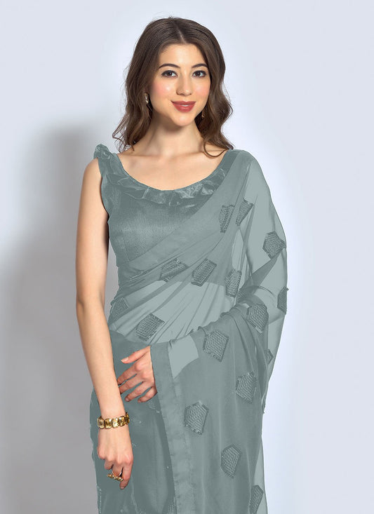 Trendy Saree Georgette Grey Sequins Saree