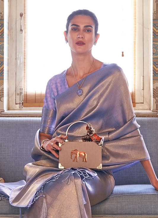 Designer Handloom Silk Lavender Weaving Saree
