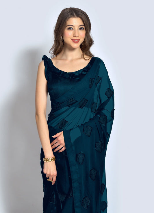 Contemporary Georgette Blue Sequins Saree