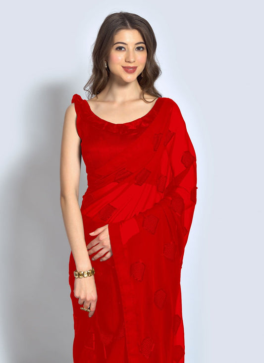 Designer Georgette Red Sequins Saree