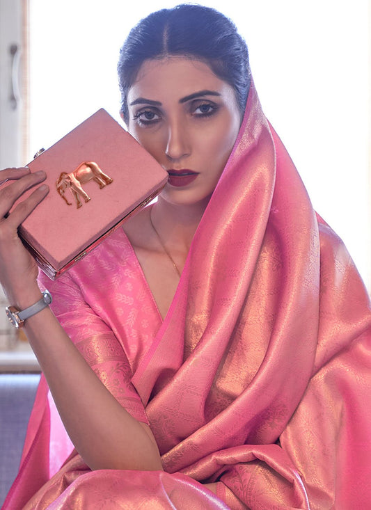 Contemporary Handloom Silk Pink Weaving Saree