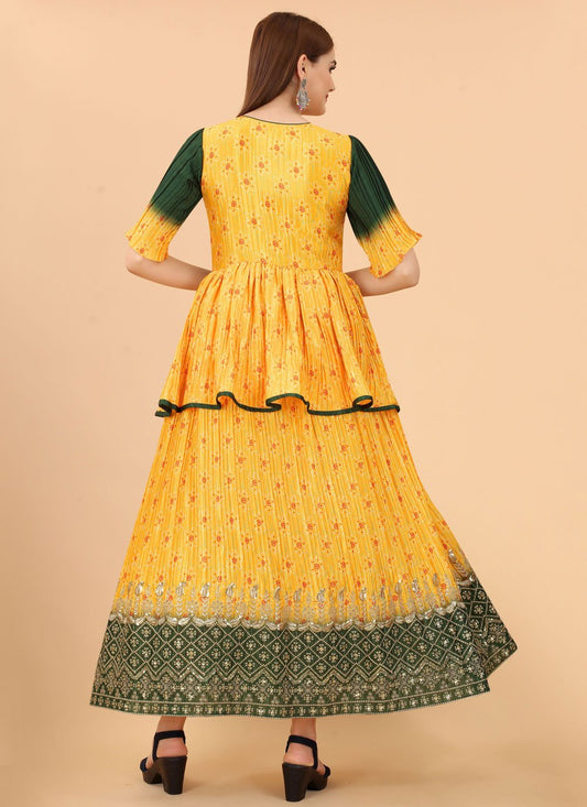 Gown Silk Yellow Digital Print Gown