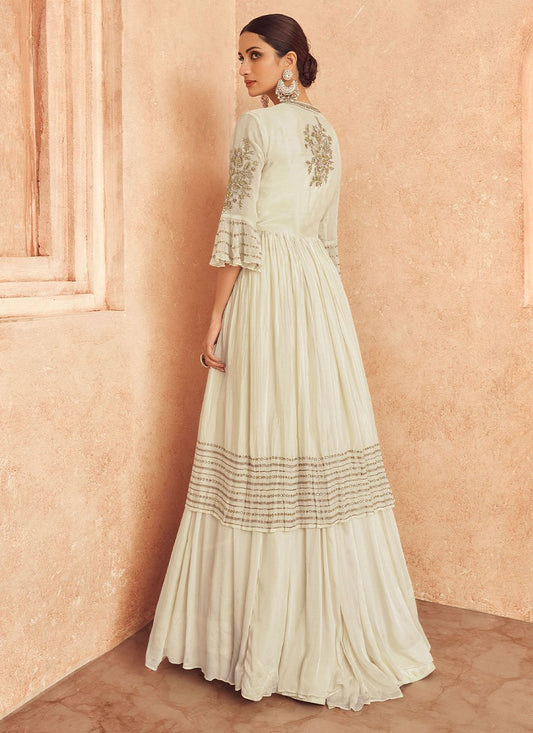Designer Gown Chinon Georgette Off White