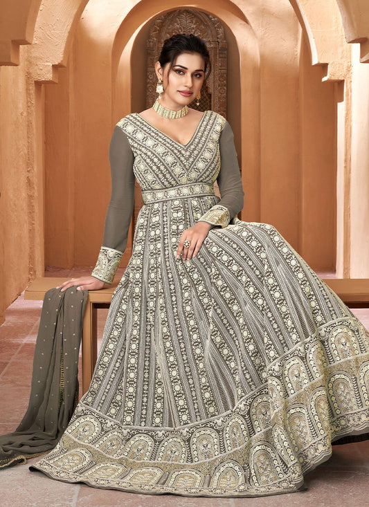 Designer Gown Georgette Grey Embroidered Gown