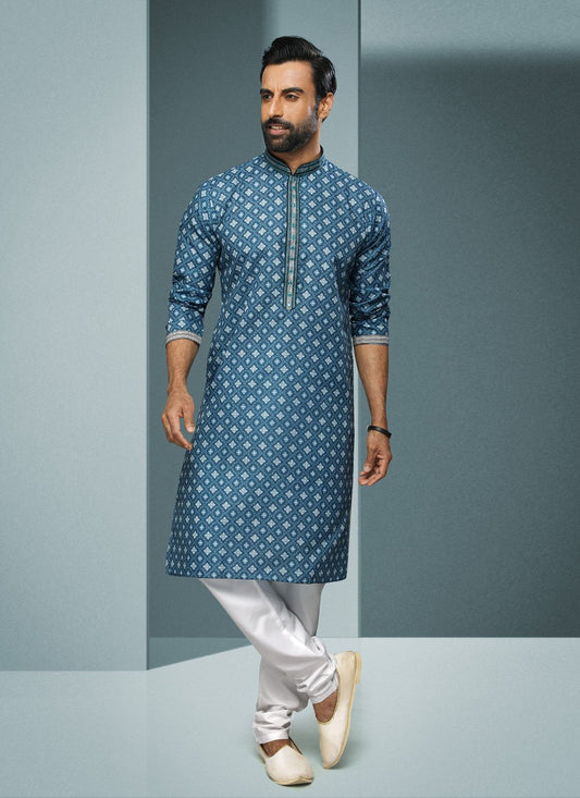 Kurta Pyjama Handloom Cotton Blue Digital